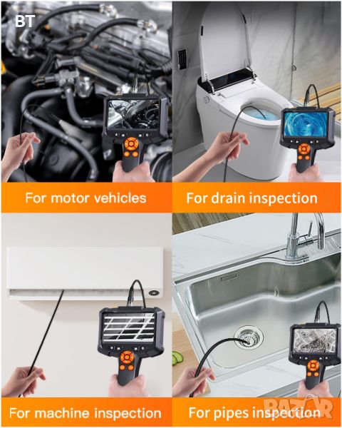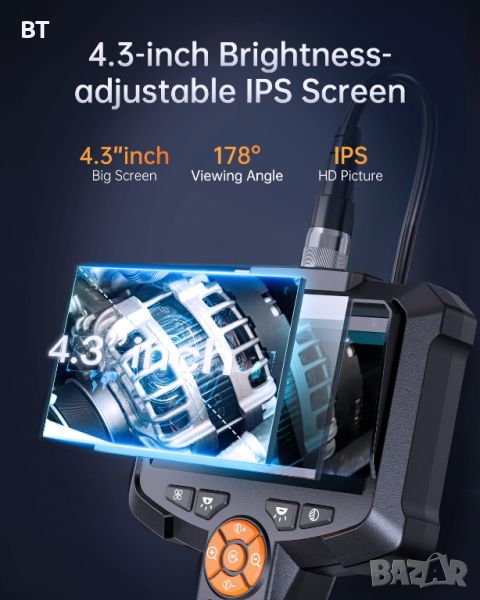 1. 4,3-инчов IPS LED дисплей : 1920*1080P HD камера за инспекция, оборудвана с 4,3-инчов цветен LED дисплей, гледане в реално време на реални изображения с висока разделителна способност. Дръжката е с ергономичен дизайн, а частиците на гърба на дръжката увеличават триенето и не падат лесно. Задължителен за механици, автомонтьори и любители на Направи си сам.