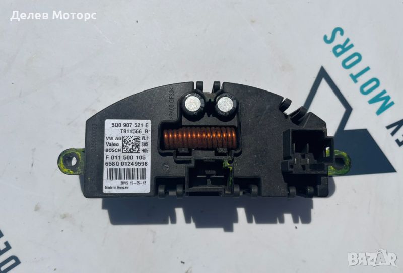 5Q907521E управление за вентилатор на парно от Skoda Octavia 1.6 TDI, 110 ph, 5sp, engine CXX, 2017г. в автоморга Delev Motors, между с. Каменар и с. Куманово гр. Варна. ВСИЧКИ ЦЕНИ СА С ВКЛЮЧЕНО ДДС. ВСИЧКИ ЧАСТИ СА С 14 ДНИ ПРАВО НА ВРЪЩАНЕ. Изпращане на части чрез наложен платеж с куриер за цялата страна, получаване на следващият ден. Доставката е за сметка на КУПУВАЧА. Изкупуване на западни и японски автомобили, джипове и бусове след 2015 г. за части. Издаване на удостоверение за бракуване пред КАТ. РАБОТНО ВРЕМЕ ОТ ПОНЕДЕЛНИК ДО ПЕТЪК от 9.00 ч. до 18.00 ч., СЪБОТА ОТ 9.00 ч. ДО 14.00 ч., ПОЧИВЕН ДЕН НЕДЕЛЯ. За контакти: 0897852371