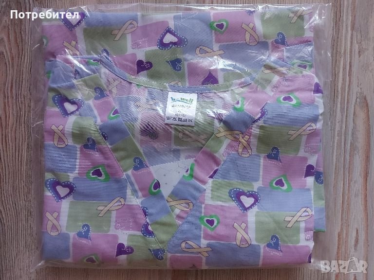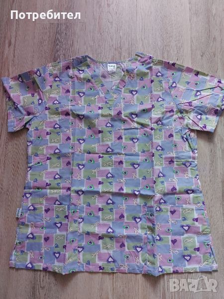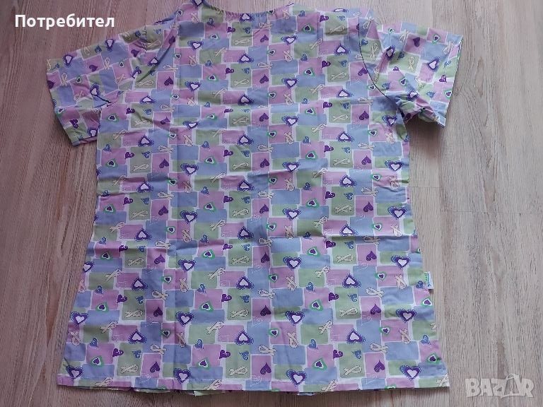 Чисто ново медицинско облекло, номер XL или 48, състоящо се от цветна туника и бял панталон с ластик в талията.