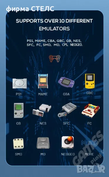 Поддържани емулатори PS1, CPS, GBA, MD, SFC, FC.