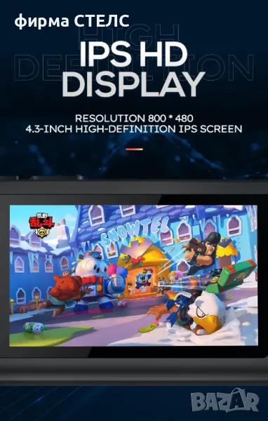 4.3 инчов размер с 16 милиона цвята и резолюция 800 x 480 HD.