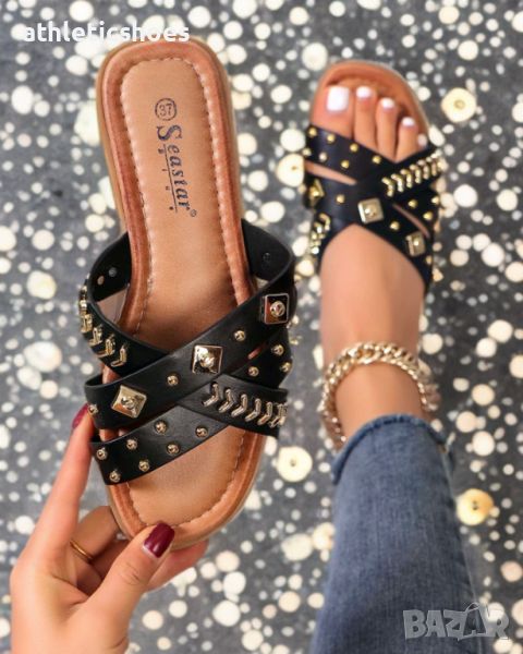 Дамски чехли на равна подметка с декорации → Обява 46482101