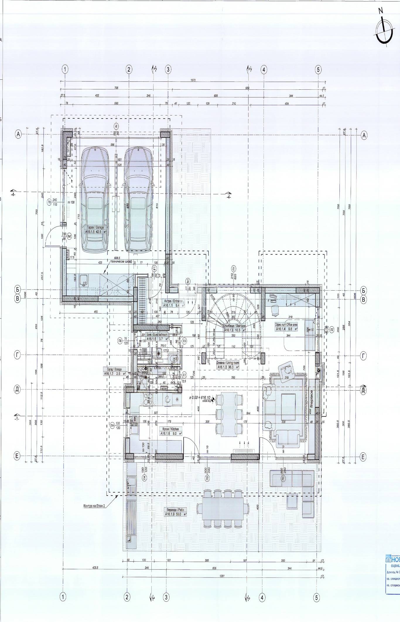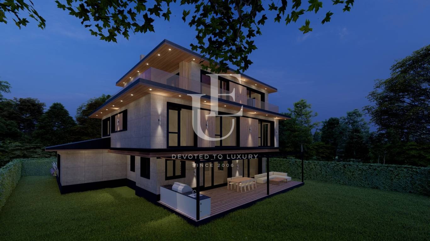 Имотът разполага с просторни помещения, разпределени на два етажа, с обща площ от 430 кв.м. и собствен двор. Отоплението е осигурено чрез термопомпа, а на покрива ще бъдат монтирани два фотоволтаични панела, които допринасят за допълнителна енергийна ефективност. При строителството са използвани материали от най-висок клас - тухли Wienerberger Porotherm с 15 см външна топлоизолация, вентилируема фасада, скатен покрив с керамични керемиди Tejas Borja Flat-10, както и троен стъклопакет с алуминиеви профили Schuco с прекъснат термомост, нисък коефициент на топлопреминаване и висока соларна защита.