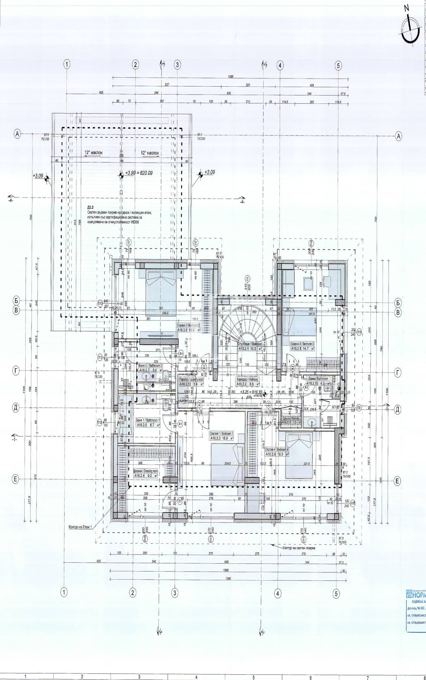Втори етаж: четири спални с бани и тоалетни към тях, като в три от тях има гардеробни