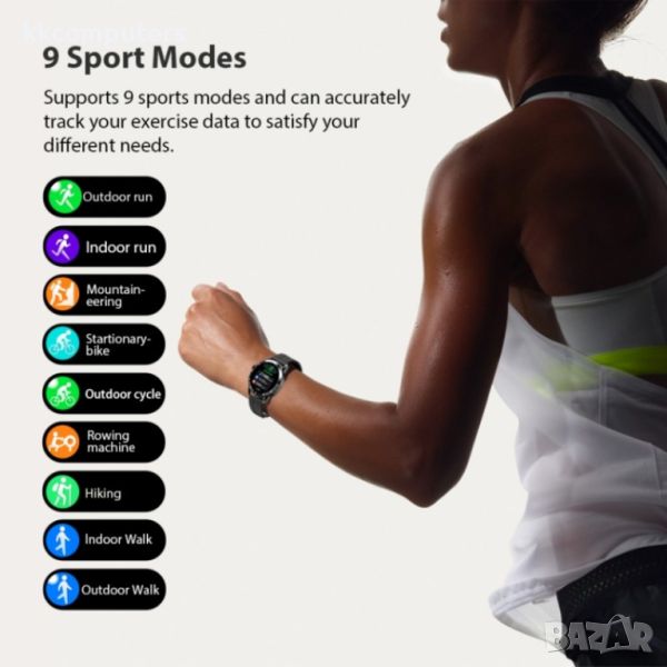 Спортни режима: бягане на открито, ходене на открито, бягане на закрито, ходене на закрито, туризъм, катерене, колоездене на открито, колоездене на закрито