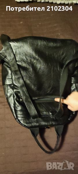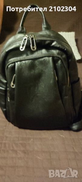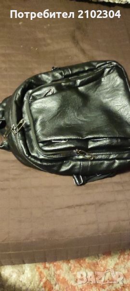 Черна раница от изкуствена кожа(не е лачена)с много джобове.