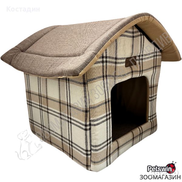 Къщичка за Домашен любимец - за Куче/Коте - 35см/35см/40см - Кремаво-Шарена разцветка - Urban Pets
