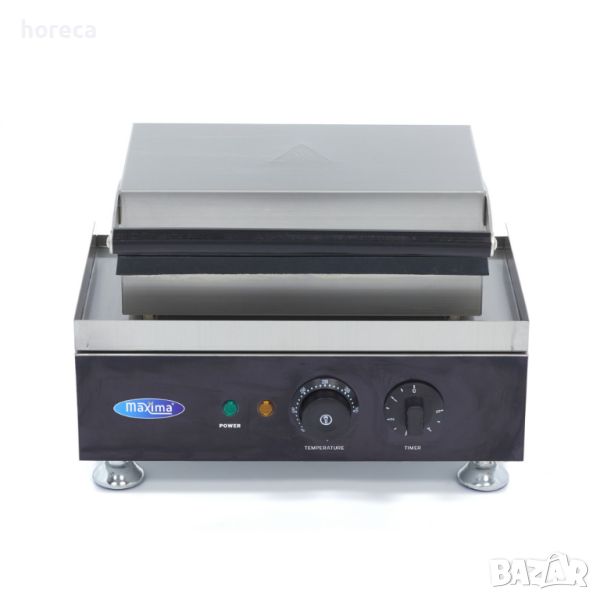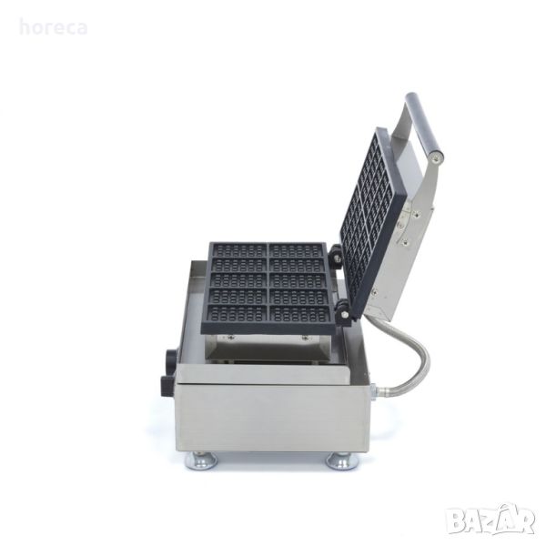 Професионален гофретник е здрав и лесен за работа, с масивна дръжка за бързо производство на 10 броя мини гофрети наведнъж. Чугунена плоча за печене с незалепващо покритие и контрол на температурата от 50 - 300° C. Гофретникът загрява бързо, благодарение на мощния нагревателен елемент и остава топъл по време на употреба. Корпус от неръждаема стомана и лесна за почистване повърхност. Снабден с таймер за предотвратяване на прегаряне на вафлите. Крачетата от неръждаема стомана в долната част осигуряват стабилност на плота.