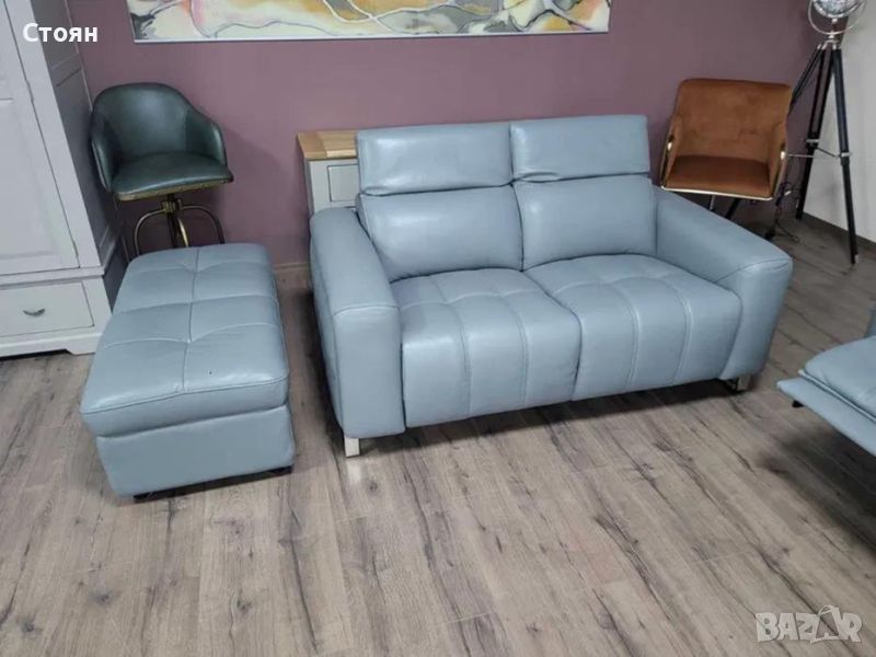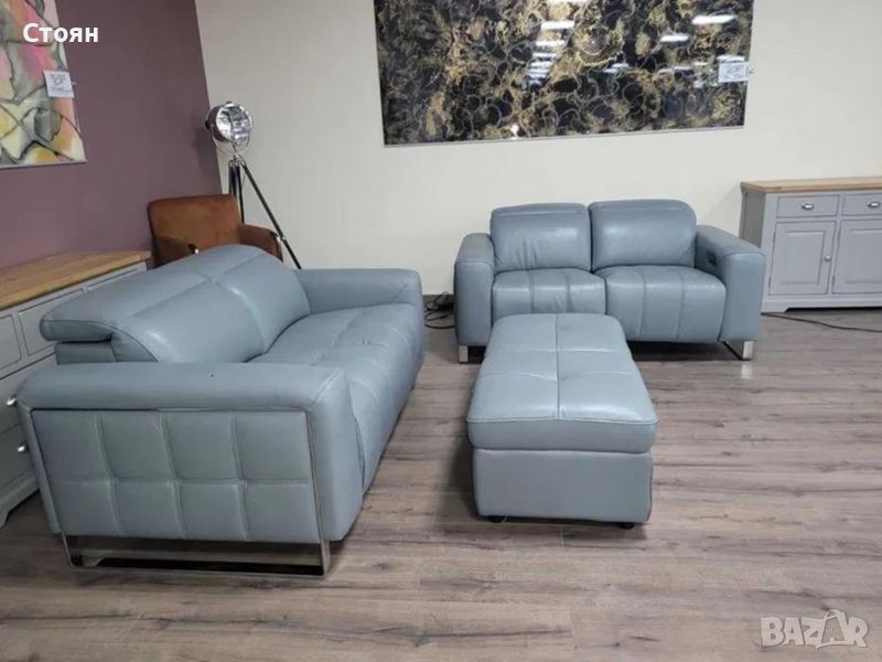 Сив кожен комплект дивани две двойки и табуретка → Обява 46487248