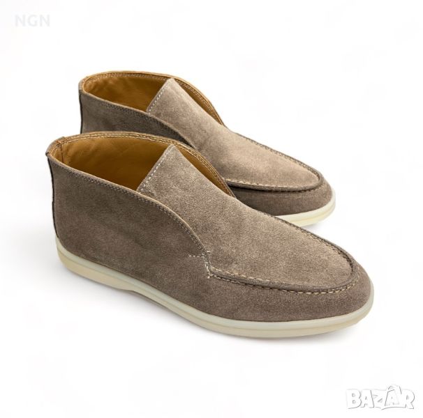 Дизайнерски, модерни и удобни високи дамски лоуфъри Loro Piana. Изработени изцяло от естествен велур отвън и изцяло естествена кожа от вътре.