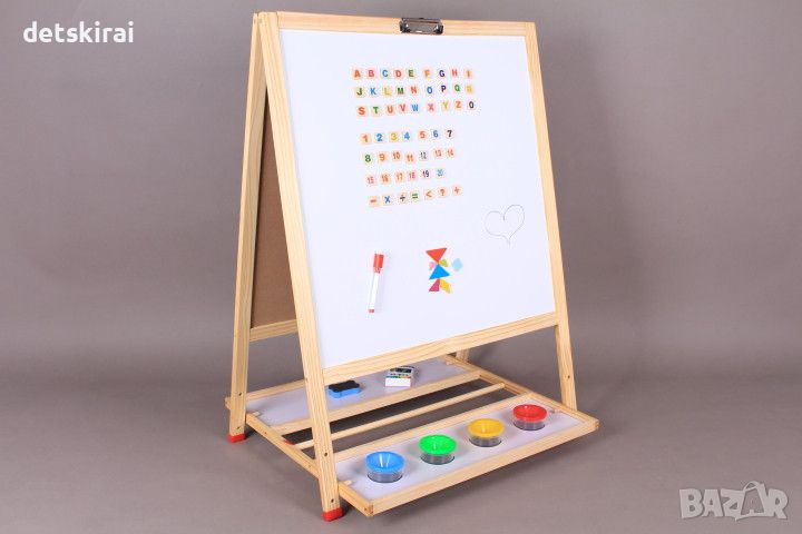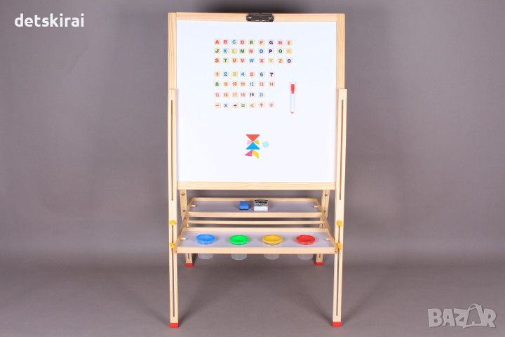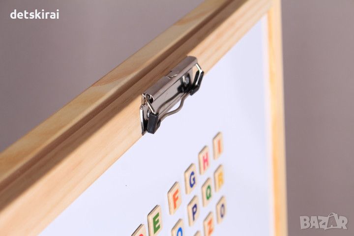 Бялата страна е предназначена за писане и рисуване с флумастер и подреждане на магнитните елементи.