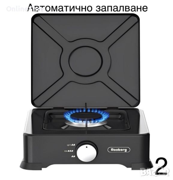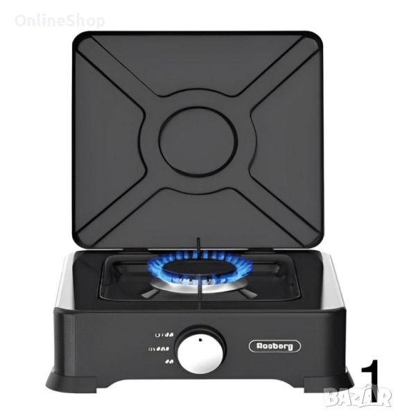 Единичен газов котлон с капак. Боядисан панел от въглеродна стомана Горелка от лят алуминий с емайлирана капачка. Метална скара за тиган. По-добър пламък и по-бързо готвене. Икономичен и мощен. Висококачесвен, безопасен и лесен за използване. Автоматично запалване (нужна е батерия AAA! НЕ Е ВКЛЮЧЕНА В КОМПЛЕКТА!). Мощност: 2.2 kWh. Тип газ: Бутан, Пропан и техните смеси. Налягане: 30 mbar. Размери: 30х30х9 см Уредът е предназначен за използване на открито и проветливо място. Задължително прочетете инструкциите преди да изпозлвате уреда! ВНИМАНИЕ: Някой от частите може да са горещи! Съхранявайте и използвйте далеч от деца!
