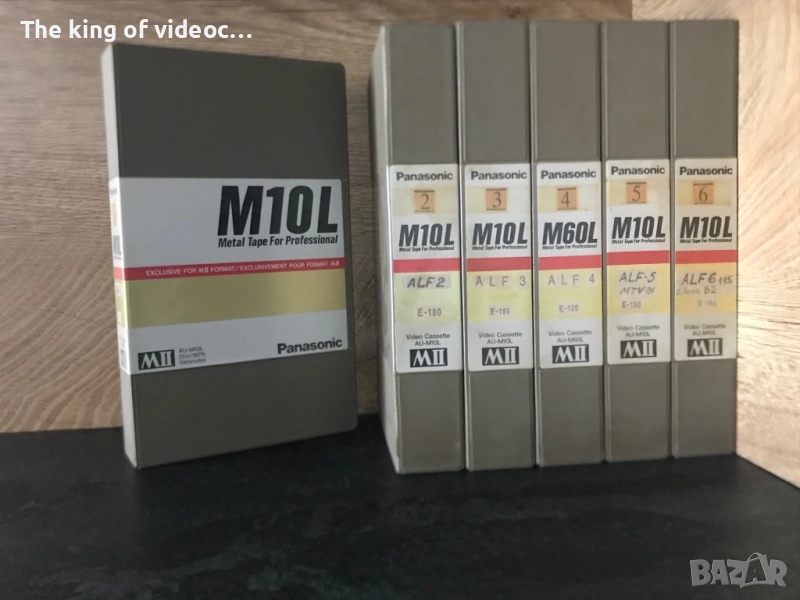 Panasonic , отварят се изключително лесно и се затварят плътно от всякъде . Това са най-добрите , най-удобните и най- здравите видео-кутии . Без счупено по кутиите и касетите ! Като нови ! Озвучени на български език , оригиналния дублаж за България . Всяка видеокасета е с няколко епизода на Алф . Във видеокасета Алф 5 , освен филма Алф има и музикални записи от 1991 година от тв. програма MTV . Касетата Алф 6 , съдържа : сериала Алф различни епизоди 115 минути ( близо 2 часа ) и Зона В2 - 80 минути . Продават се заедно . Цена 40 евро .