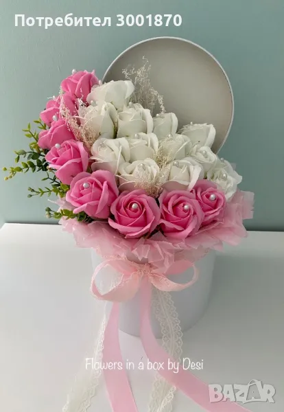 Аранжирани сапунени рози в кутии букет в кутия подарък цветя → Обява 46492231