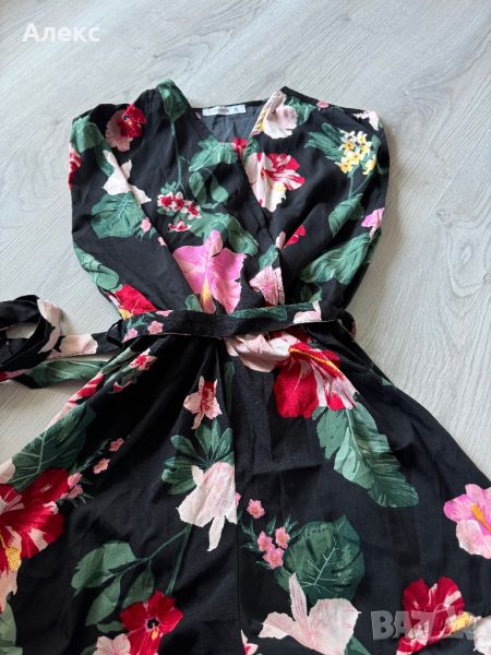 Летен гащеризон тип гащи с отворено деколте, ластик и колан на кръста доста лека материя.Модела е за слаби девойки.Дреха е запазена въпреки че е обличана 2-3 пъти