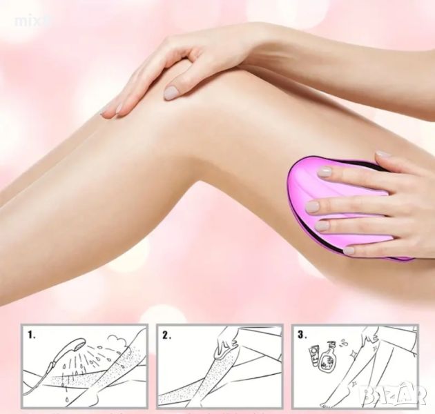 Начин на употреба: Върху чиста и суха кожа се нанасят кръгови движения до премахване на окосмяването, изплаква се третираната зона с хладка вода и след това се поставя крем или овлажнител с цел хидратация на кожата и избягване на дразнене.