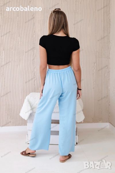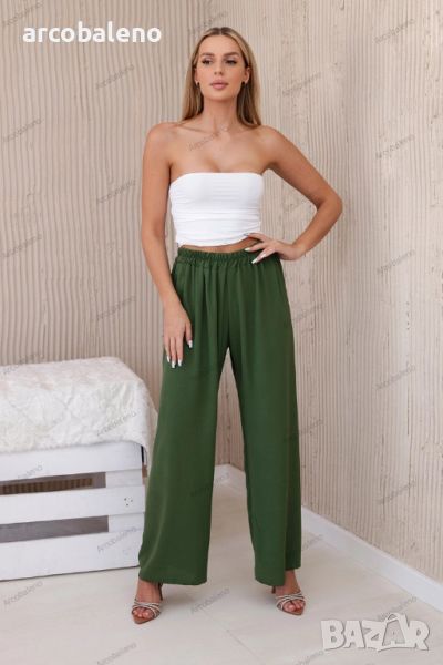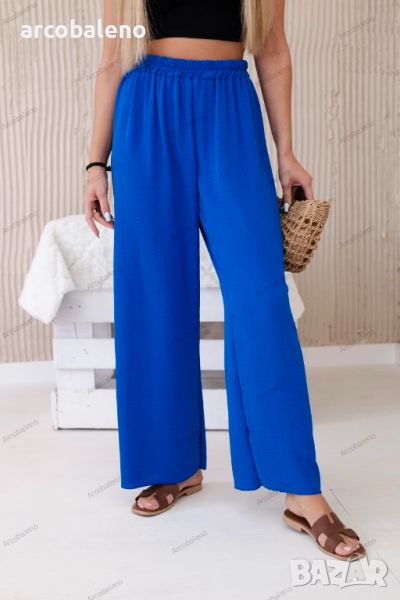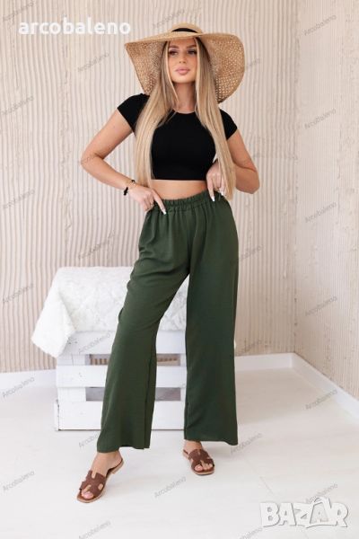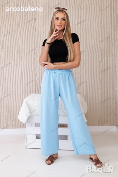 Панталонът от вискоза с широки крачоли е уникална дреха, съчетаваща удобство и елегантност. Изработени от лека и ефирна вискозна материя, тези панталони не само гарантират свобода на движение, но и ви карат да се чувствате леки и свежи през целия ден. Широкият крачол придава на панталона характерна, свободна кройка, която е едновременно модерна и удобна. Този елемент прави панталона изключително стилен и впечатляващ, като придава оригиналност на всеки стайлинг. Универсалният дизайн на широките панталони ги прави идеални за различни поводи и стилове. Можете да ги носите както с ежедневни, ежедневни тоалети, така и с по-елегантни комплекти за бизнес срещи или вечерни излизания. Панталоните от вискоза с широки крачоли са идеалният избор за жени, които ценят комфорта и стила. Благодарение на универсалния си дизайн и висококачествена изработка, тези панталони са незаменим елемент от гардероба, който идеално ще допълни всяка колекция дрехи. Размерът е универсален и ще бъде подходящ за жени, носещи размер S, M или L.
