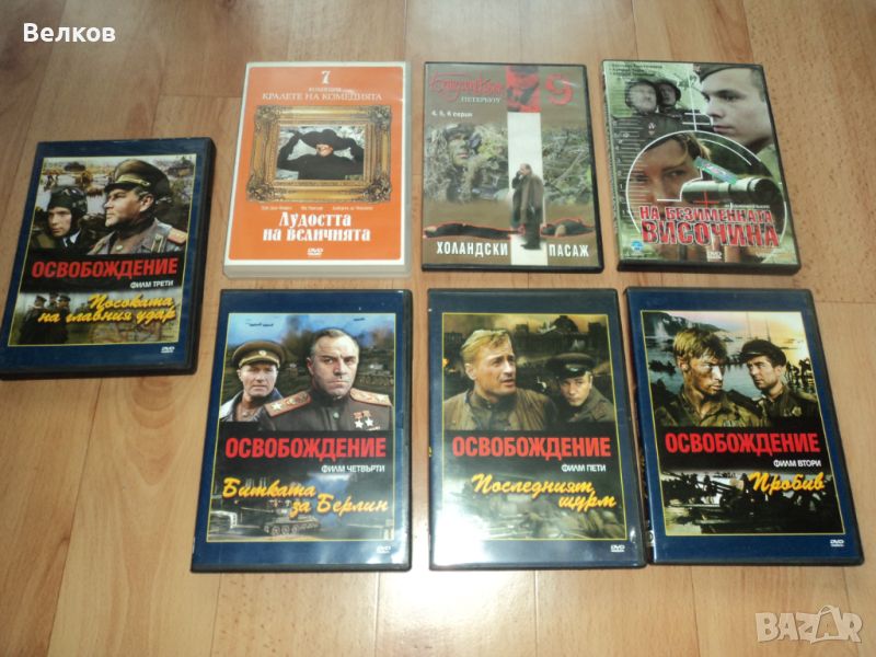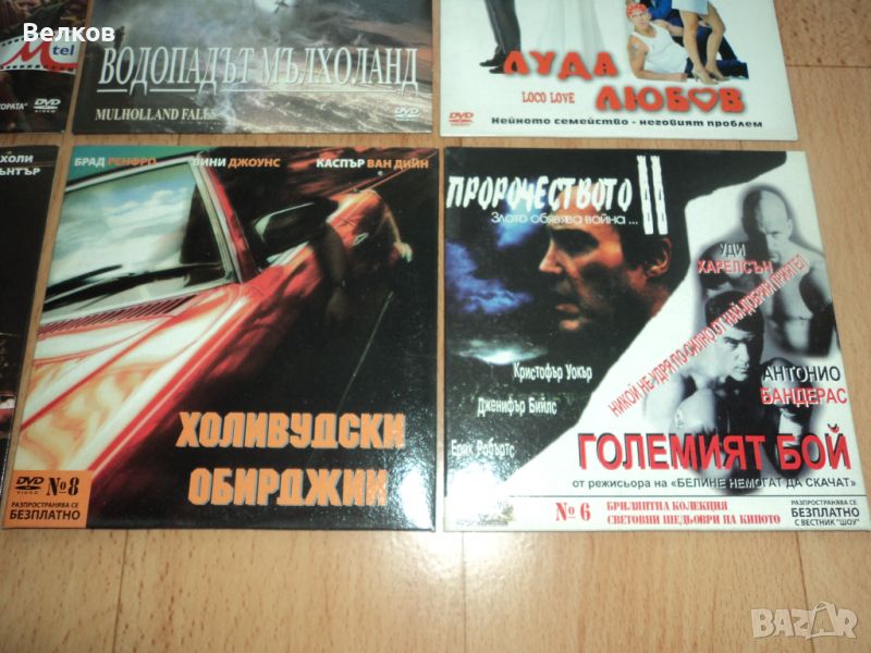 ДВД дискове с филми, 26 бр. по 2лв. 1,02€, всички 35лв. 17,90€. Повечето не са пускани, а някои са гледани по веднъж.