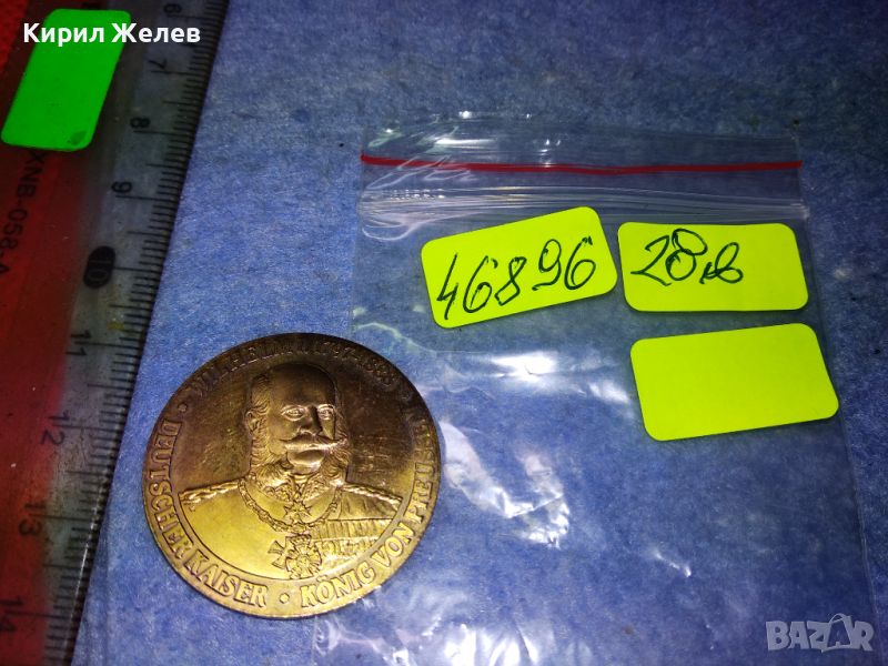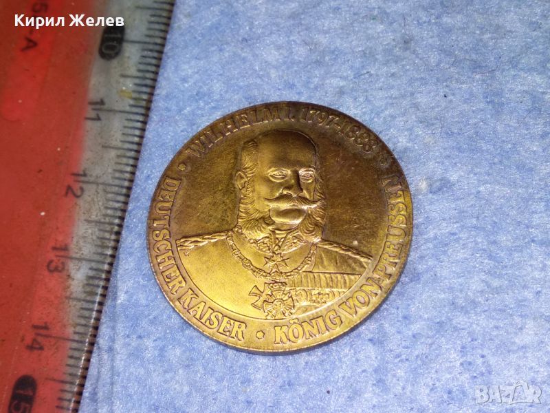 КАЙЗЕР ВИЛХЕЛМ I КРАЛ на ПРУСИЯ ИМПЕРАТОР на ГЕРМАНИЯ Стар ПАМЕТЕН ПЛАКЕТ МЕД с ДЕБЕЛА ПОЗЛАТА 46896