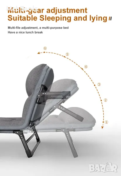 Леглото може да се ползва и като шезлонг с няколко степени на повдигане на облегалката.