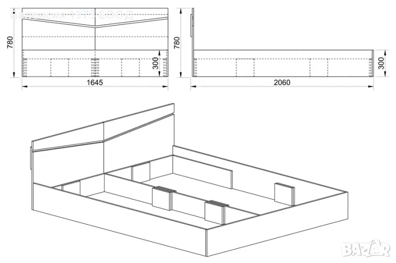 Размери: 144.5/206/ Н78 см( височина на касата 30см);