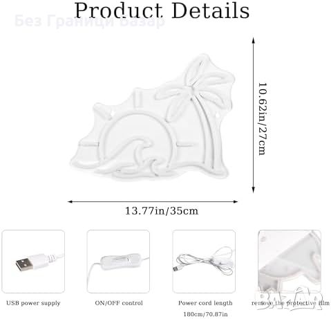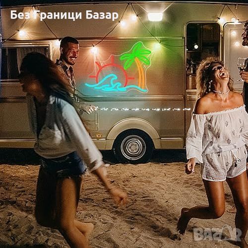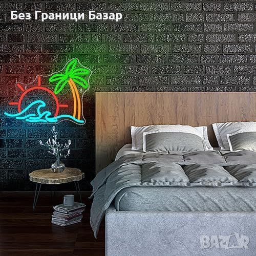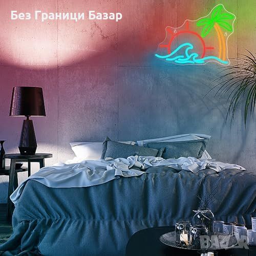 Нова Неонова лампа за стена - плаж и вълни, Декоративен LED знак украса