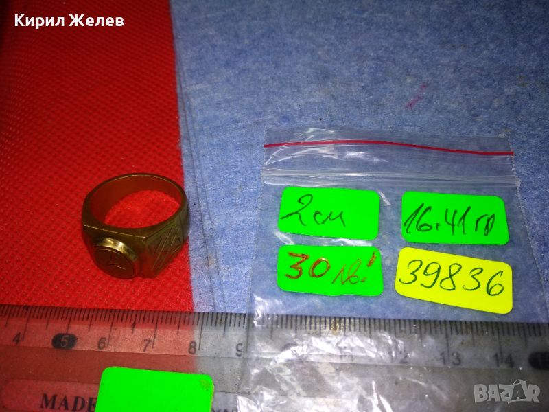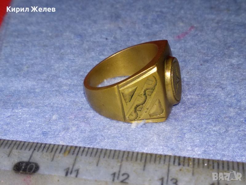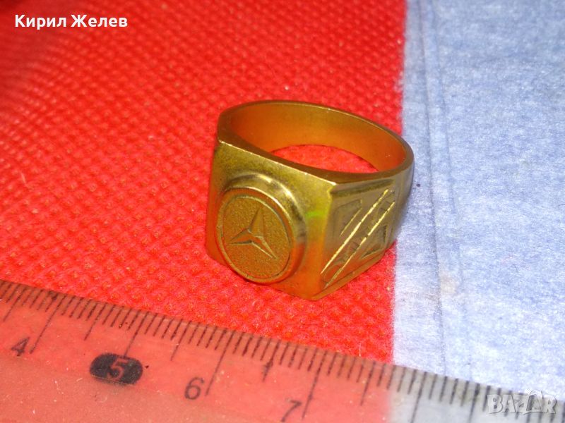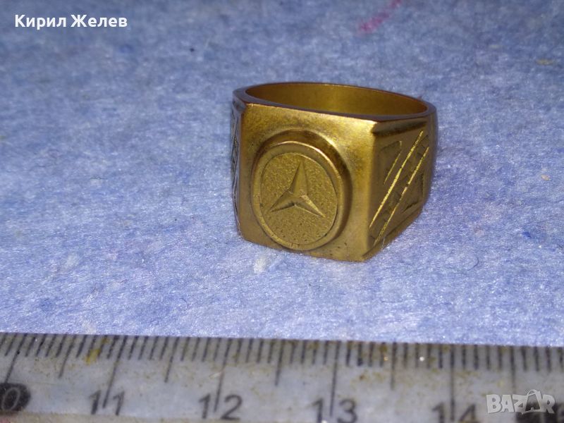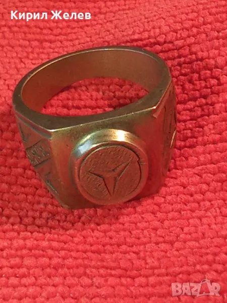 СТАР БРОНЗОВ РЕТРО ПРЪСТЕН с ЕМБЛЕМА на МЕРЦЕДЕС и ПЕЧАТИ 14К и 585 - За КОЛЕКЦИЯ 39836