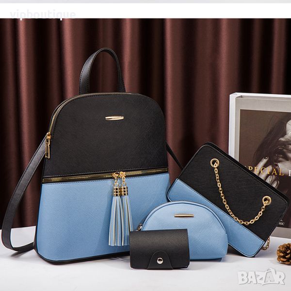 Кожена спортна дамска раница с малка чанта и портмоне → Обява 46496798