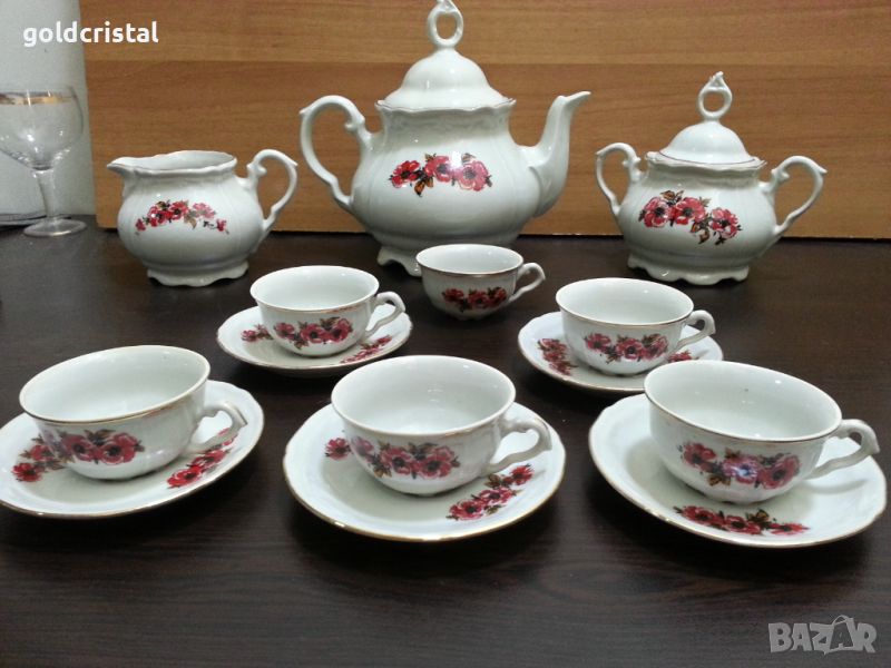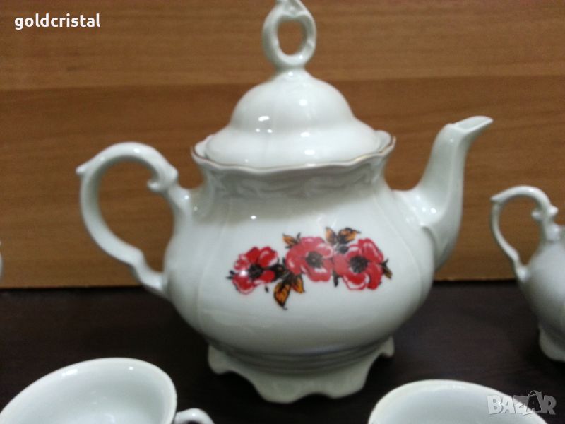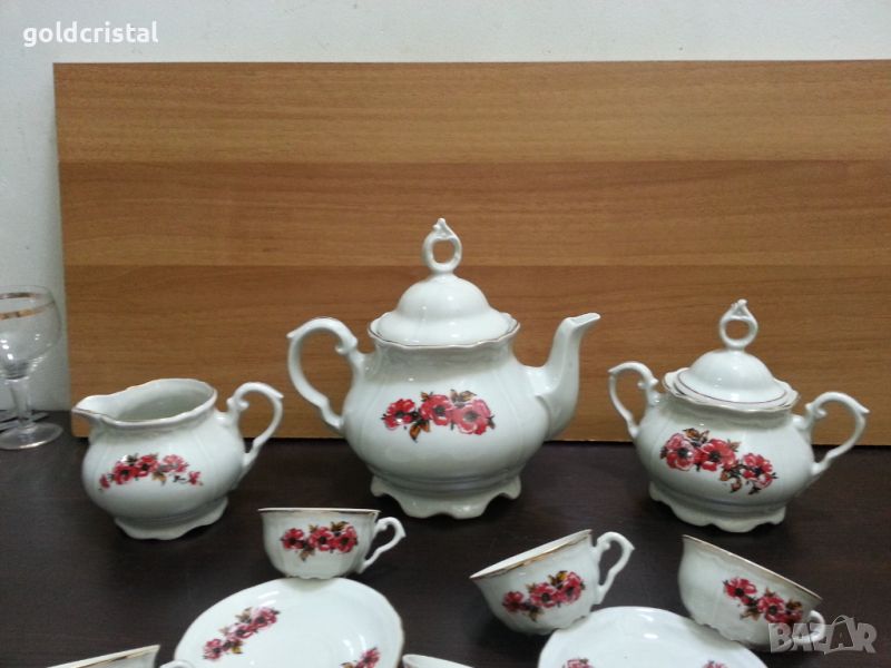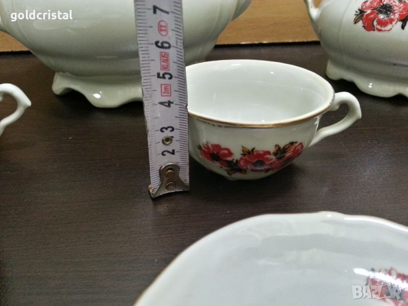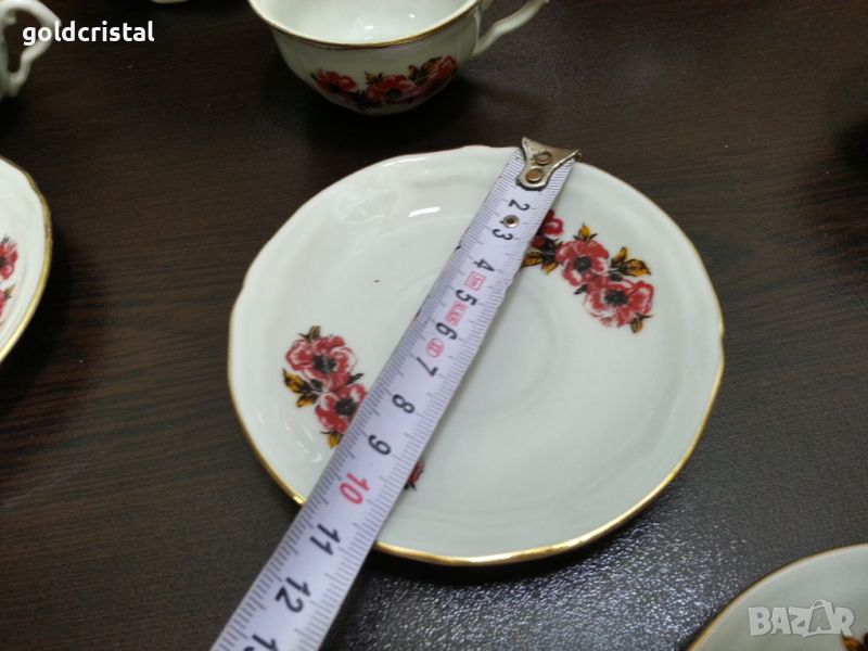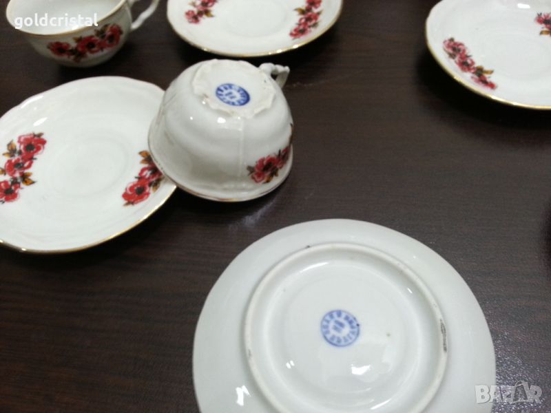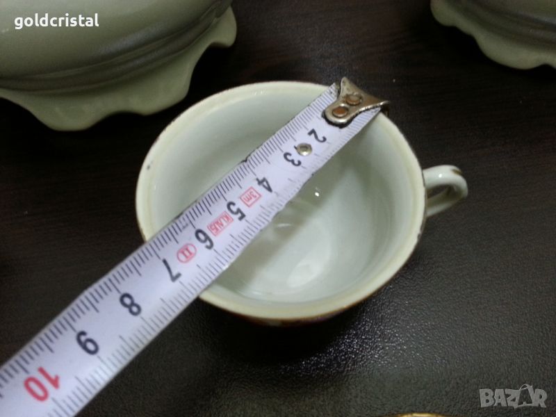Стар български порцелан чашки за кафе чайник захарница и латиера 6 бр чашки и 5 бр чинийки златен кант без забележки сервиз комплект сет лот ретро арт декор винтидж колекция стари старинни антикварни предмети обзавеждане за дома и семейството подходящи за подарък за ценители и колекционери