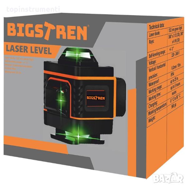 - 4D ИЗМЕРВАНЕ - 360 ГРАДУСА: излъчва 16 измервателни линии, включително 8 вертикални и 8 хоризонтални. Зелените лазерни лъчи осигуряват прецизно и ясно нивелиране.
