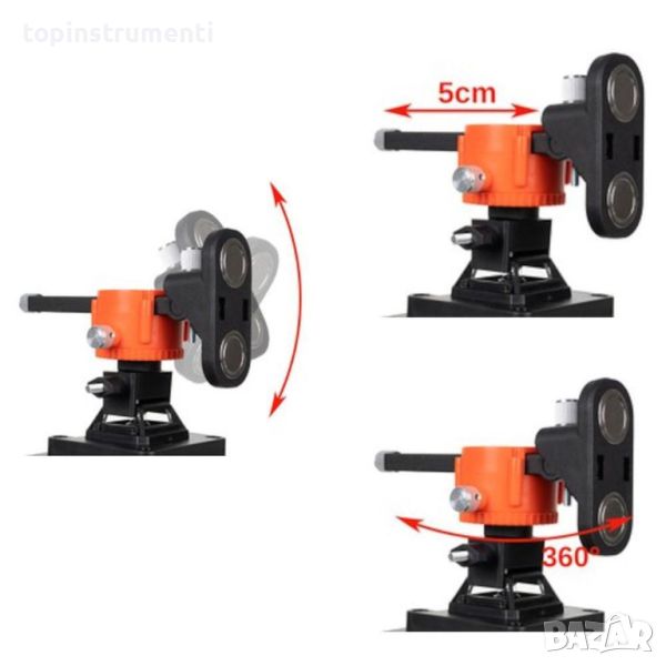 - СТОЙКА ЗА МОНТИРАНЕ КЪМ СТЕНА: в комплекта е включена стойка за стена. Просто завийте металната пластина към избраната стена и след това използвайте регулируемия държач, оборудван с два силни магнита, които осигуряват стабилна връзка с предварително завинтения лист. Това позволява безпроблемен монтаж на нивелира на всякаква височина на стената .