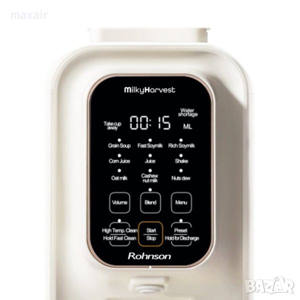 Новият уред за приготвяне на напитки на растителна основа Уред за ядково мляко Rohnson R-5901 MilkyHarvest е новият инструмент “всичко в едно” за всички видове напитки на растителна основа. Множеството опции в менюто ви позволявта да приготвяте вкусни напитки на растителна основа без консерванти. Можете да използвате всчики видове ядки – бадеми, овесени ядки, кашу, соя, многозърнести храни.