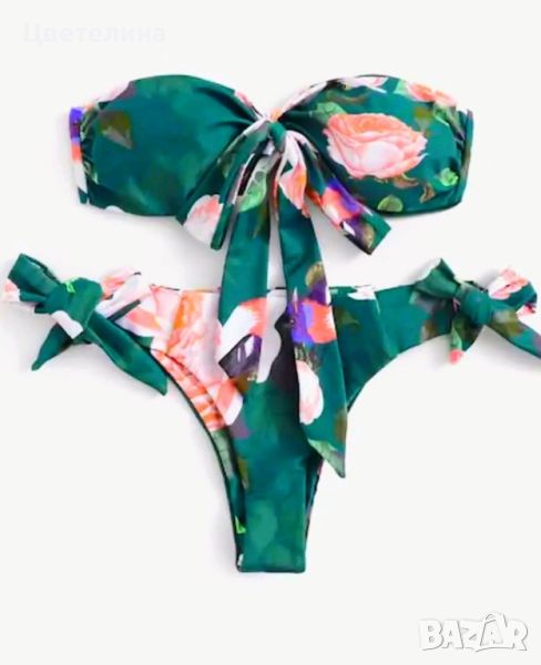 Дамски бански в тъмнозелен цвят с цветя и птички размер М цена 32 лв. + подарък бонуси → Обява 46500579