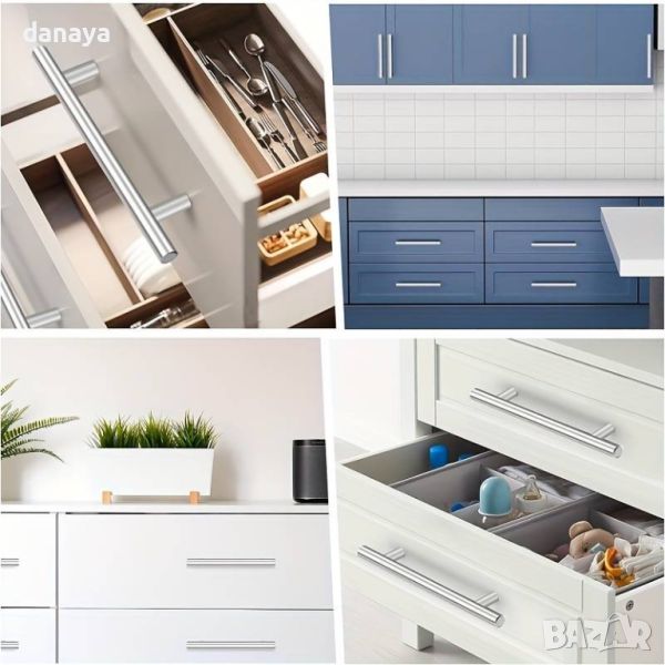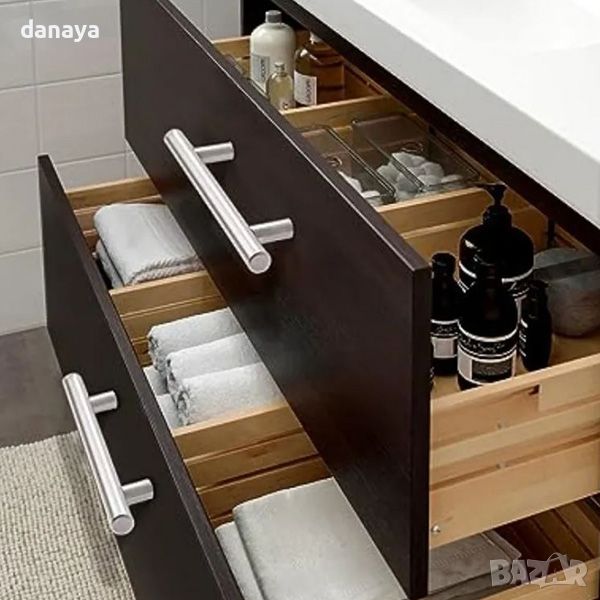 дръжки за мебели. Стилни и красиви, с изчистен дизайн, който ще пасне на всеки интериор. Всяка мебелна дръжка е изработена от метал инокс. Дръжките могат да бъдат използвани както за завършването на нови мебели, така и за подмяна на стари дръжки на вратички за шкафове и чекмеджета и всякакви други мебели. Монтират се бързо и лесно. В комплекта са включени и нужните винтове за монтаж.