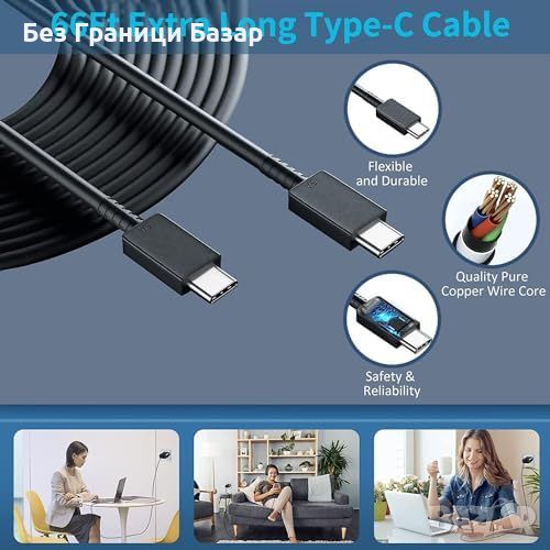 USB C към USB C кабел 2 метра с 5-проводникова медна жица