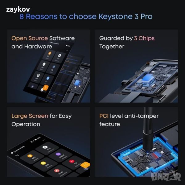 Хардуерен портфейл за криптовалута Keystone, 4-инчов сензорен екран