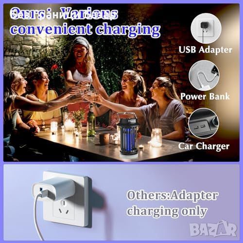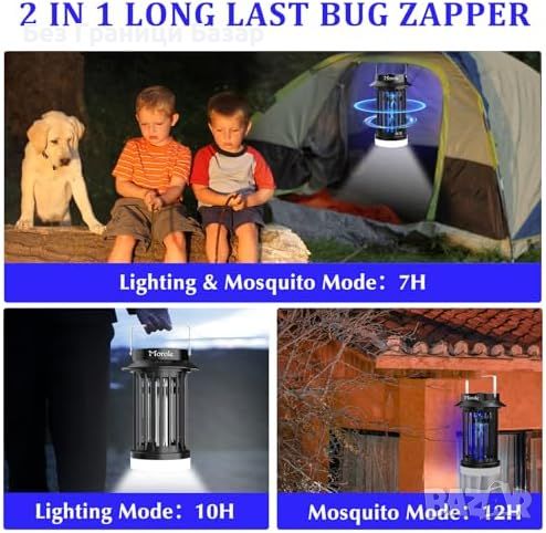 Ефективно унищожаване на комари: Силни UV лъчи привличат и убиват комари, мухи, молци и други летящи насекоми.