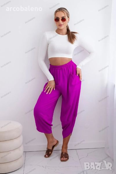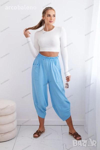 Дамски панталон с широк крачол и джобове, 15цвята