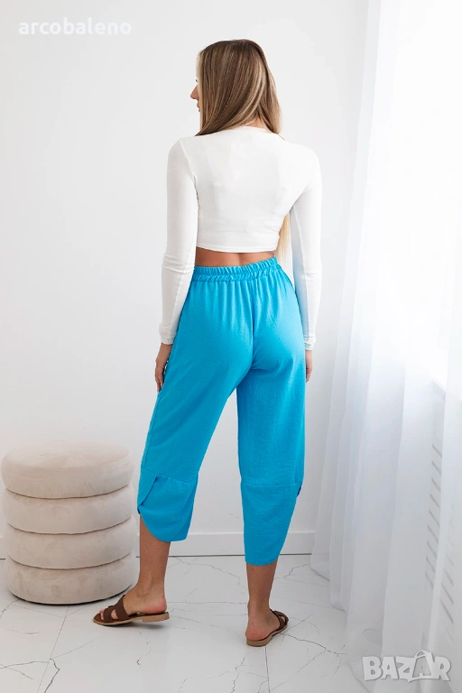 Широките панталони с джобове са практичен и стилен избор, съчетаващ комфорт и модерен дизайн. Изработени от висококачествени материали, тези панталони са удобни за носене през целия ден. Характерно за тях са широките крачоли, които придават свобода и лекота на целия стайлинг. Освен това джобовете, разположени в предната част на панталона, придават практичност и функционалност. Перфектни за различни поводи, от ежедневни излизания до по-официални срещи, тези панталони ще ви накарат да се чувствате комфортно и стилни в същото време. Размерът е универсален и ще бъде подходящ за жени, носещи размер S, M или L.