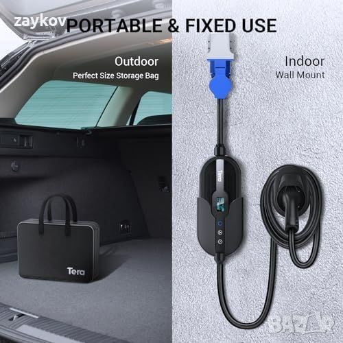 Tera Smart Portable EV Charger 7.6kW Type 2 EV Charger CE & TÜV 32A 240V APP WiFi Bluetooth