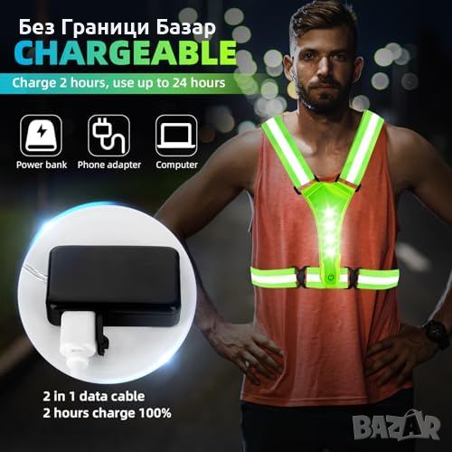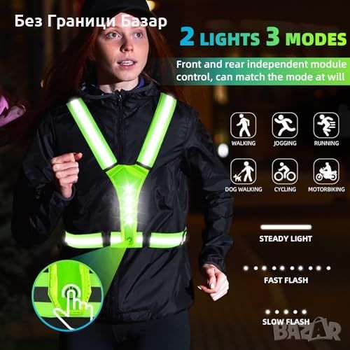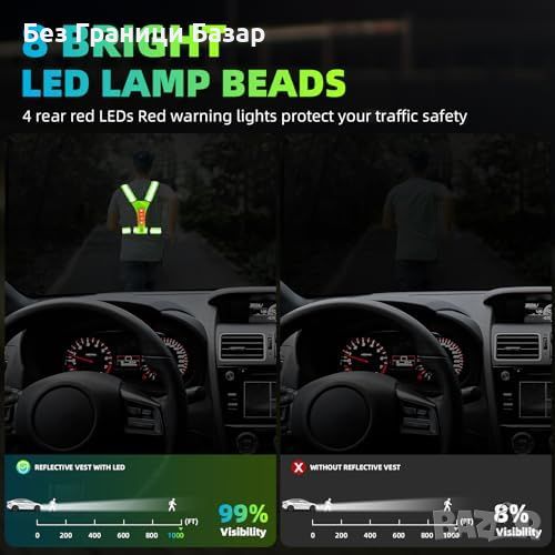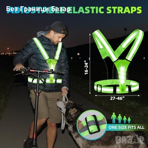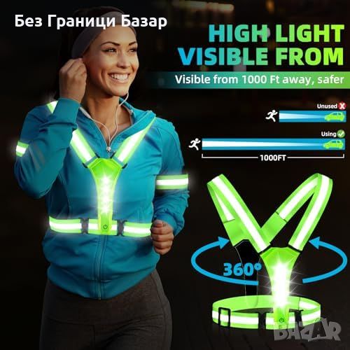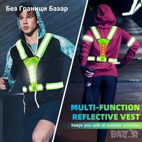 Нов Светлоотразителен LED елек за бягане и колоездене - 360° видимост