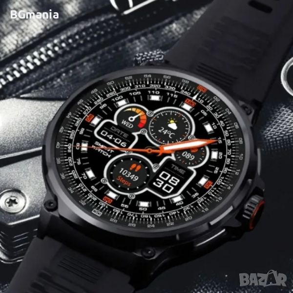 1.85-inch full-touch HD color screen, 360*360px, Водоустойчив IP67 (миене на ръце, дъжд), Разговори от часовника (набиране на тел номер, приемане/отказване на обаждане), Измерва пулс, Измерва кръвно налягане, Измерва сатурация на кислород в кръвта, Контрол на качеството на съня, Отброява изминати стъпки, Изчислява изминато разстояние, Изчислява изгорени калории, Различни режими за спортна активност, Известие при обаждане (номер или име на повикващия), Известие при съобщение (Facebook, Instagram, Messenger, SMS и др.), Степени за осветяване на дисплея, Пълен календар (ден, дата, месец), Хронометър, Аларма, Калкулатор, Фенерче, Прогноза за времето, Контрол на камерата в телефона, Контрол на музиката в телефона, Функция „намери телефона“, Индикатор за ниво на батерията, Комплект зарядно, Верижка от висококачествен силикон, Корпус от специална олекотена алуминиева сплав, Ширина на верижката – 28мм, Дължина на верижката – 26см, Диаметър на корпуса – 53мм, Тегло – 93гр, Батерия – 710mah, Управление – докосване и плъзгане, Език на часовника – Английски, Език на приложението – Английски