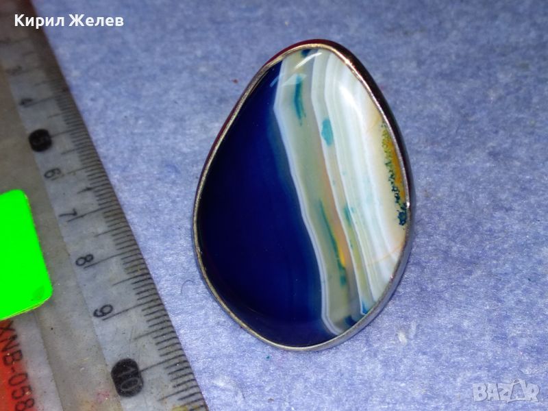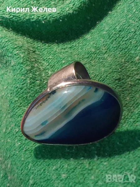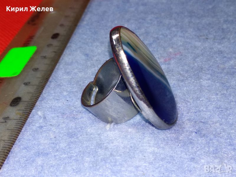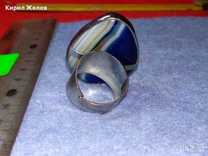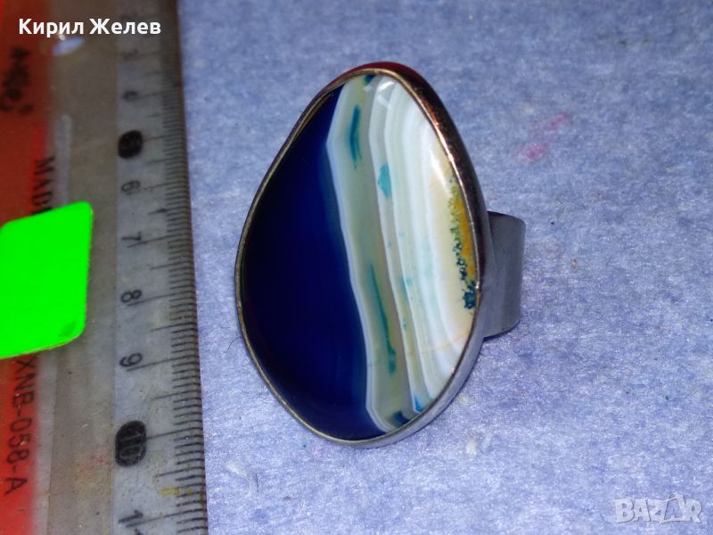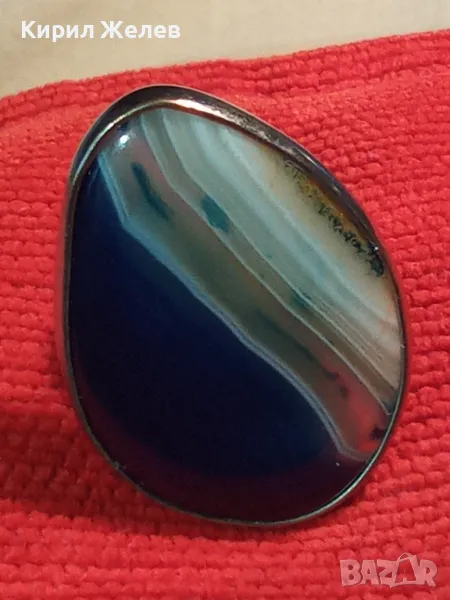 ШАРМАНТЕН РЕГУЛИРУЕМ ПОСРЕБРЕН МЕДЕН ПРЪСТЕН с ОГРОМЕН ШЛИФОВАН КРАСИВ АХАТ 44112
