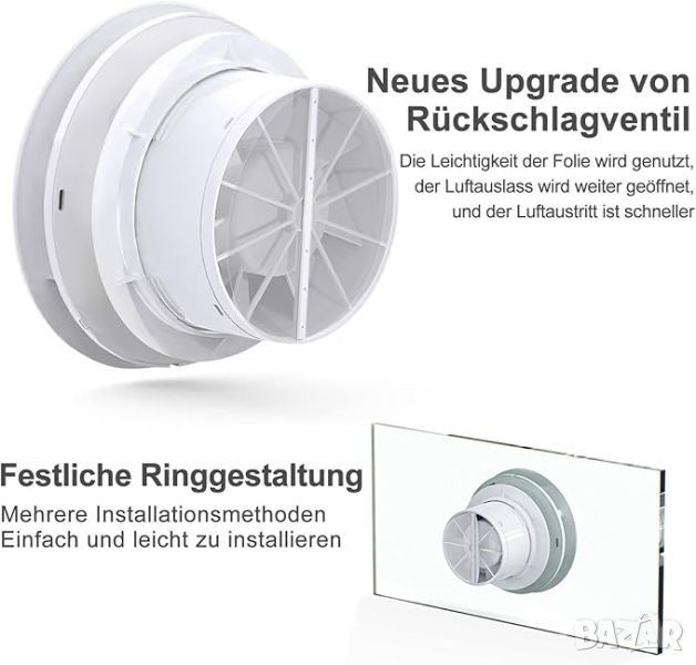 Висока производителност: 95 m³/h голям въздушен поток, ниво на шум под 34 dB, IPX4 защита. Също така проектиран със заден капак, който му позволява автоматично да се отваря и затваря с вентилатора. За да се предотврати навлизането на външен въздух и насекоми в помещението.