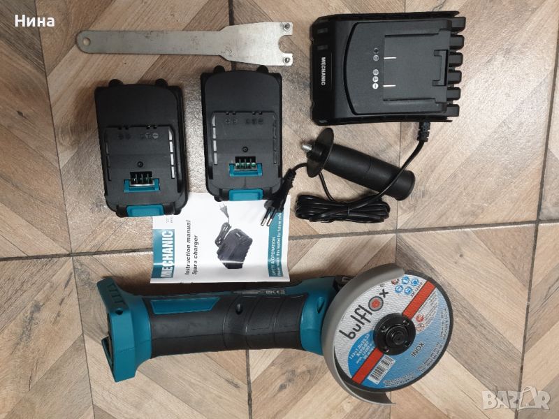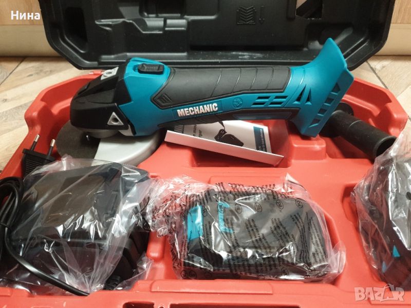 Нов безчетков акумулаторен ъглошлаиф MECHANIC. с ДВЕ батерии и зарядно. Внос от германия поместен е в куфарче на Parkside. Опция за допълнителни батерии 40лв. за брой.