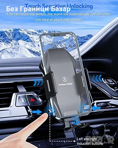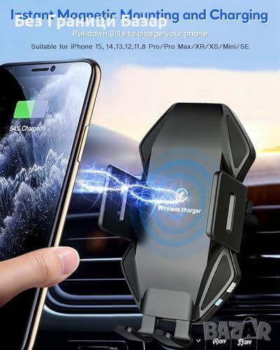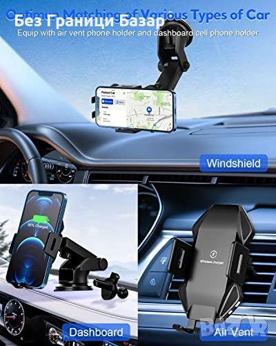 Ново Универсално 15W Qi Безжично Зарядно и Поставка за Телефон кола
