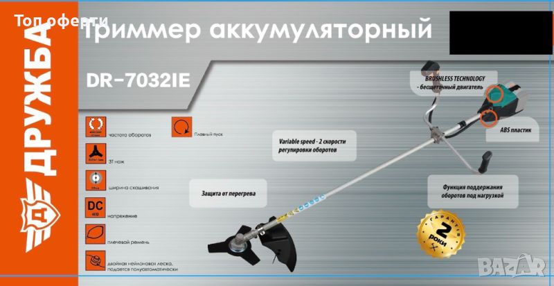 Професионален Акумулаторен Тример за Трева Дружба с 2 батерии и зарядно устройство + 24 месеца гаранция!