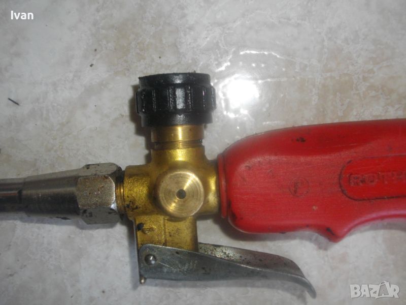 ОПИСАНИЕ на газова горелка за покривни ремонтни дейности и хидроизолации марка ROTHENBERGER - цена 199 лв. Професионална. С маркировки на дръжката и на чашката