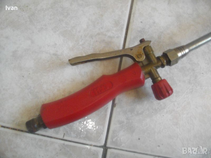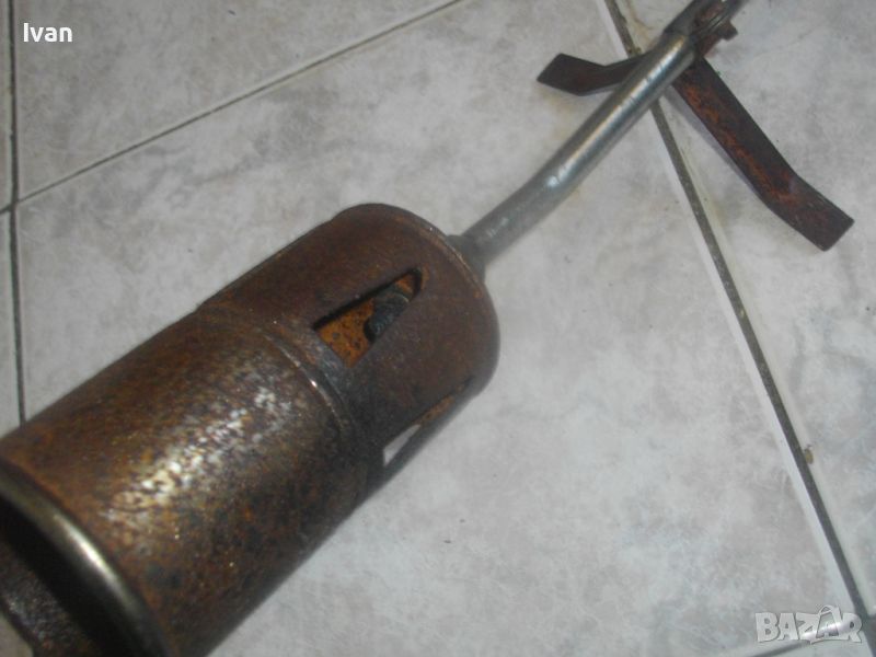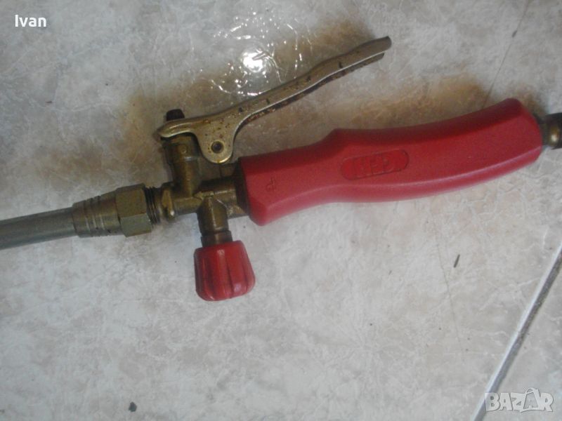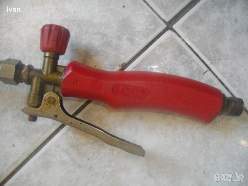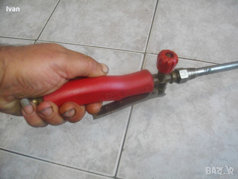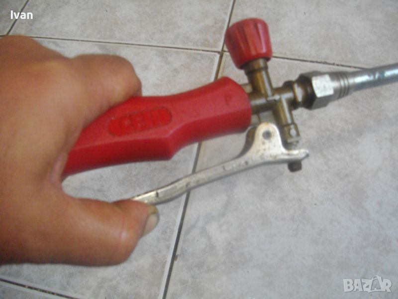 газова горелка за покривни ремонтни дейности и хидроизолации марка CFH - цена 99 лв. Дължина 93 см, чашка камбана диаметър ф 70 мм, 1 върток спирателен кран, метален спусък, метална стойка за самостоятелен стоеж, присъединитилен извод отзад за маркуч ф 14 мм.