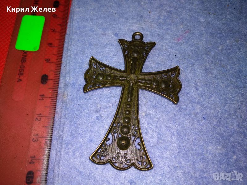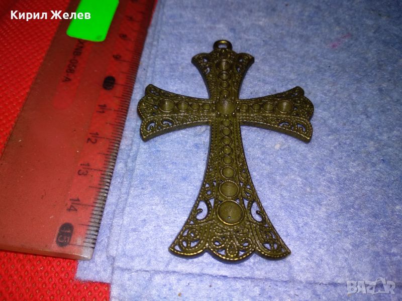 СТАР ГОЛЯМ КРАСИВ АЖУРЕН МЕСИНГОВ НАГРЪДЕН КРЪСТ 30784 → Обява 46509624